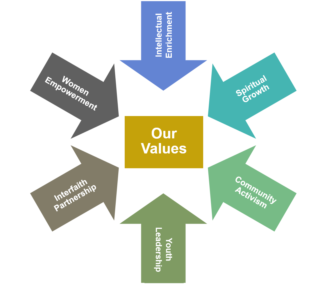 To foster the continuous development of Muslims though worship, education, service, outreach, engagement and charity.